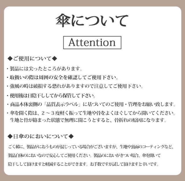 ※遮光・遮熱・UVカット能力を高めるためのコーティングを生地に施していることにより、雨傘シリーズと比較すると若干たたみづらさを感じられる場合もございます。