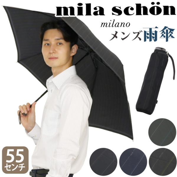 傘 折りたたみ傘 メンズ ミラショーン mila schon メンズ 雨傘 ストライプ 通勤 雨具 コンパクト 55cm 男性 紳士傘 おしゃれ ギフト 敬老の日 バレンタイン