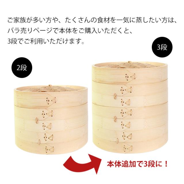 ご家族が多い方や、たくさんの食材を一気に蒸したい方は、バラ売りページで本体をご購入いただくと、6段でご利用いただけます。