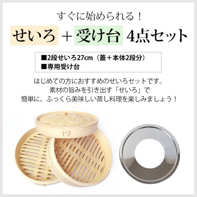 せいろ 受け台 セット 27cm 2段 竹製 蒸篭 蒸籠 蒸し板 中華せいろ 蒸し 二段 27センチ セイロ 置く 台 ステンレス 簡単 時短 蒸し器 鍋 フライパン 蒸し料理 蒸しかご 肉まん 蒸し野菜 スチームフード