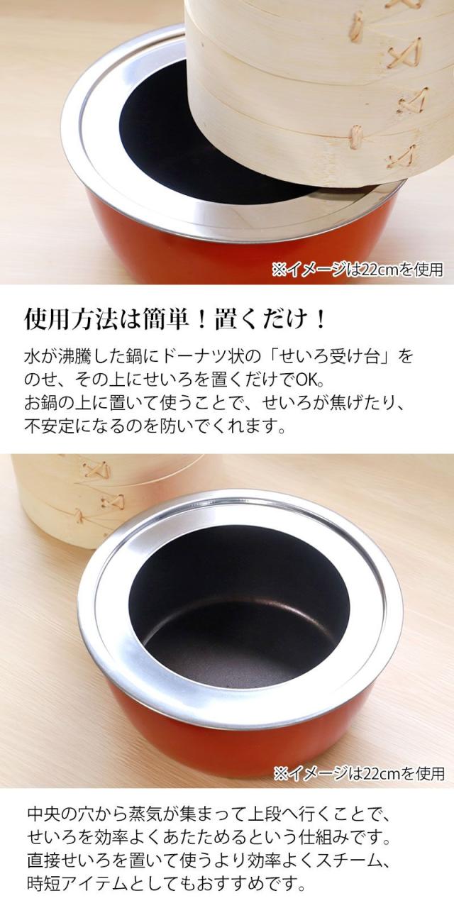 「鍋のサイズが合わない」というお悩みを解決するドーナツ型の蒸し板は、鍋の上に安定してせいろを置け、効率よく蒸気を送り上段まで温めます。