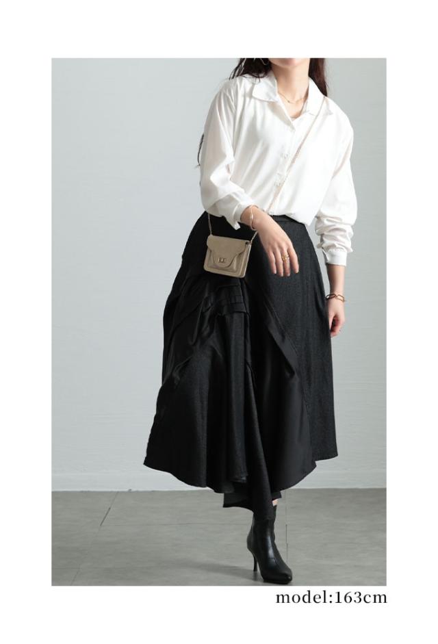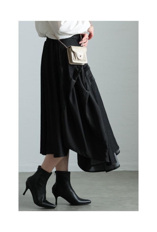春新作 存在感を引き出すアシンメトリー異素材スカート レディース ファッション スカート 異素材 プリーツ アシンメトリー フレア ロング 無地 ウエストゴム 30代 40代 50代 60代 サワアラモード sawaalamode otona 大人 cawaii 可愛い 洋服 かわいい服 sawa-9857