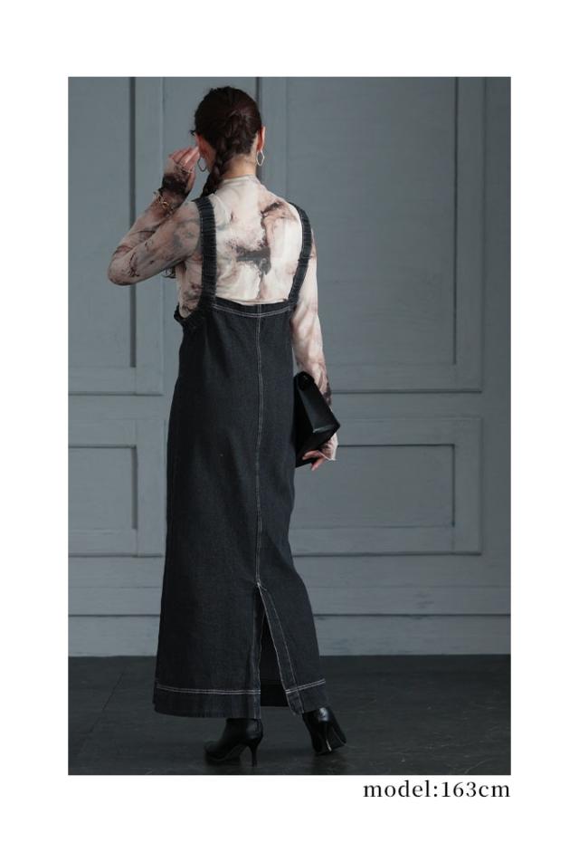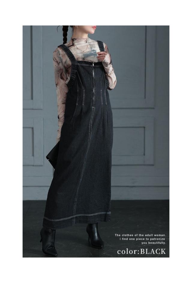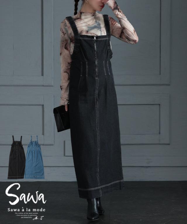 春新作 スタイルアップする大人のデニムジャンパースカート レディース ファッション ワンピース サロペット ジャンパースカート デニム タック ロング 黒 青 30代 40代 50代 60代 サワアラモード sawaalamode otona 大人 cawaii 可愛い 洋服 かわいい服 swdt-707f3247