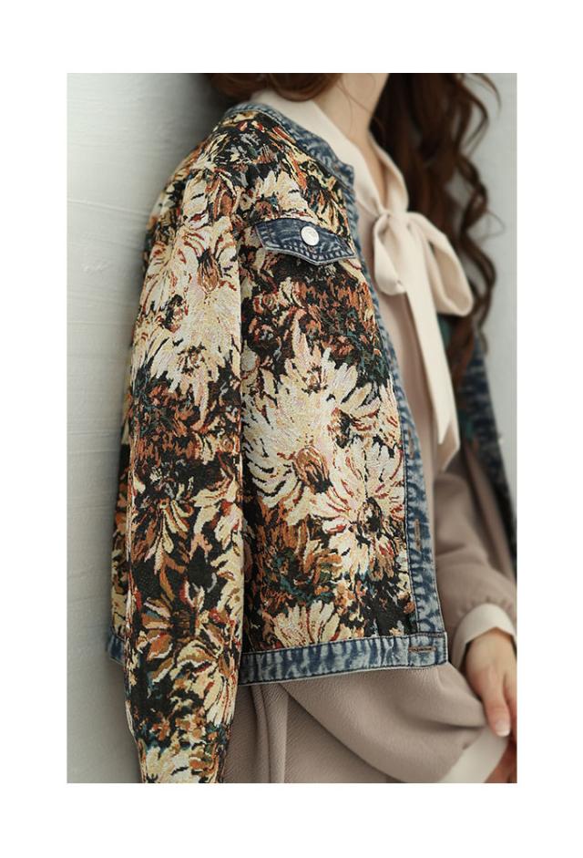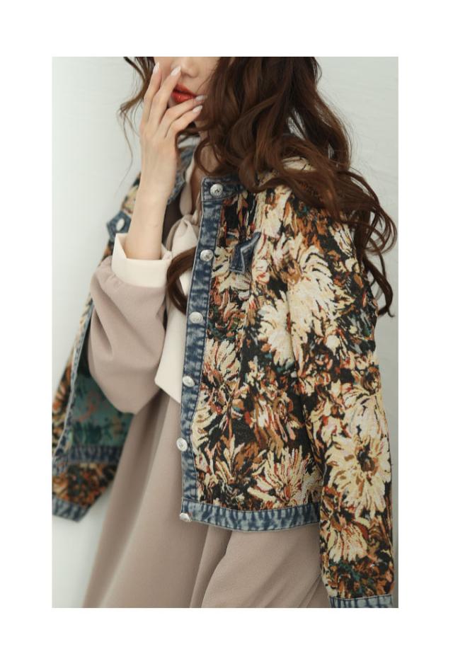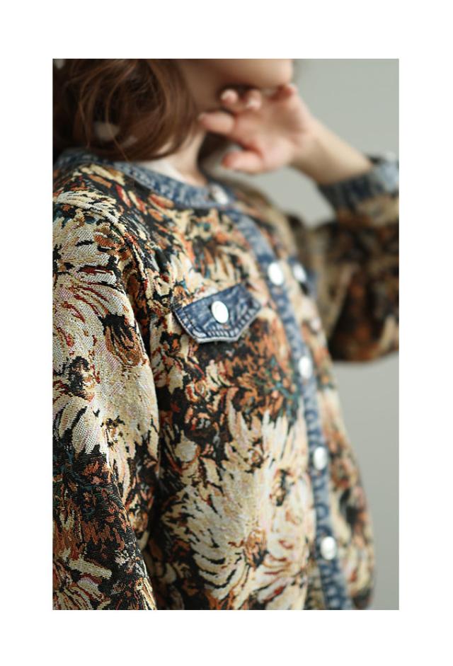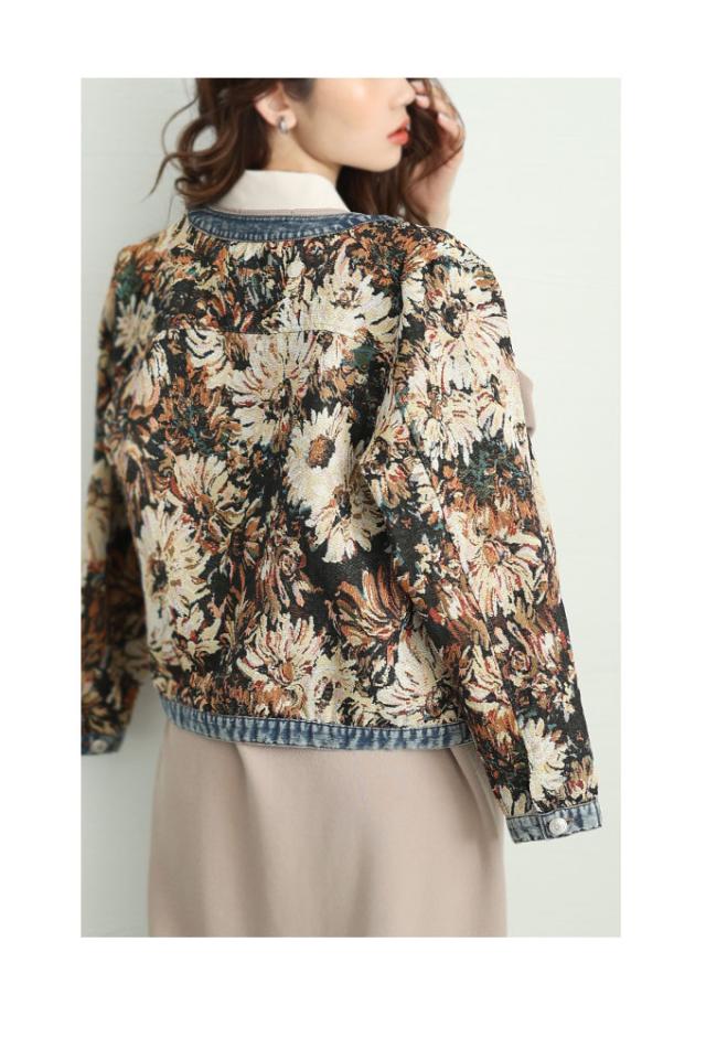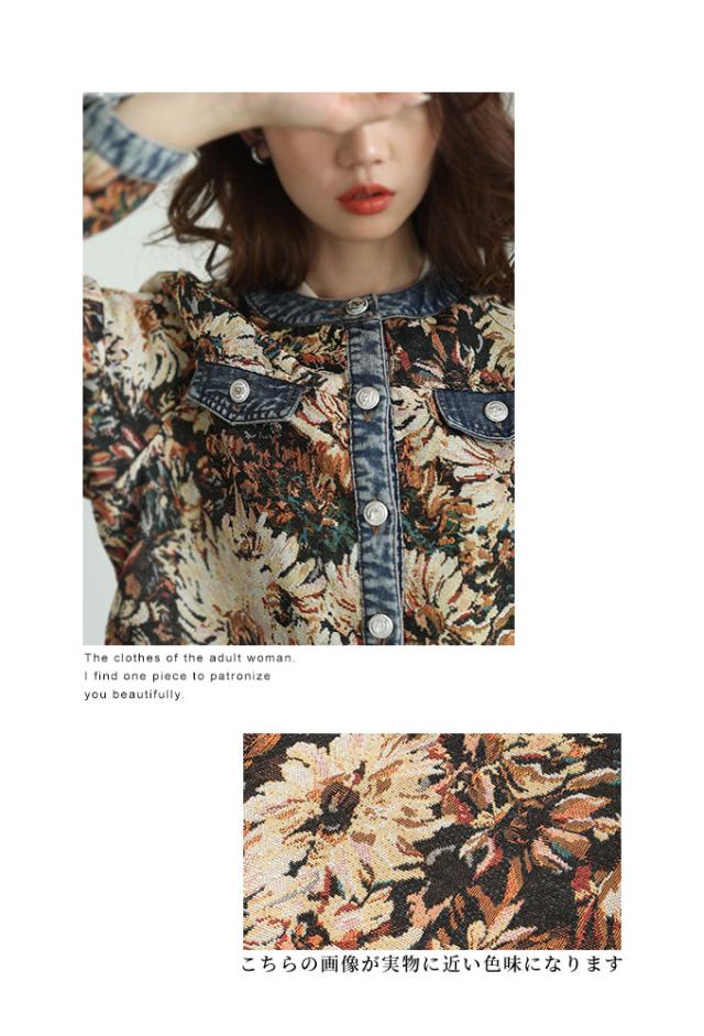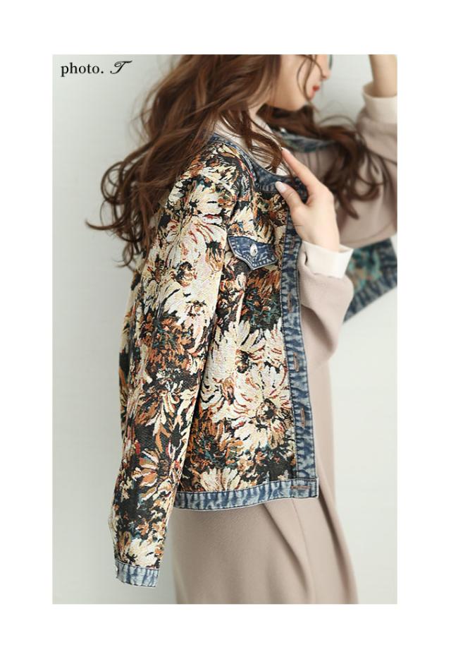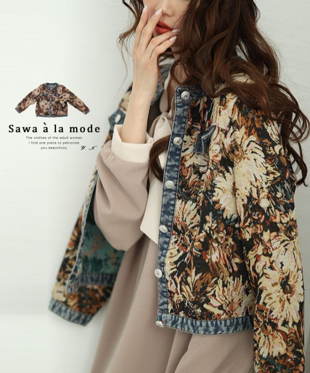 秋新作 レトロな世界へ誘うフラワープリントデニムジャガードジャケット レディース ファッション アウター ジャケット 羽織り 大人可愛い 40代 レディースファッション 50代女性 ファッション 60代 ミセスファッション サワアラモード sawaalamode otona almam-555001