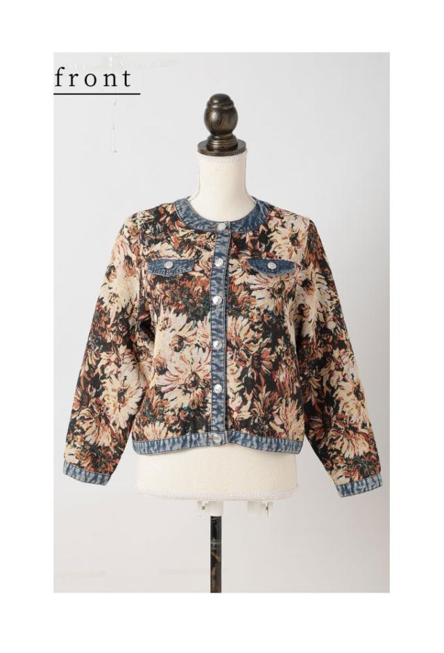 商品名: フラワープリントデニムジャガードジャケット