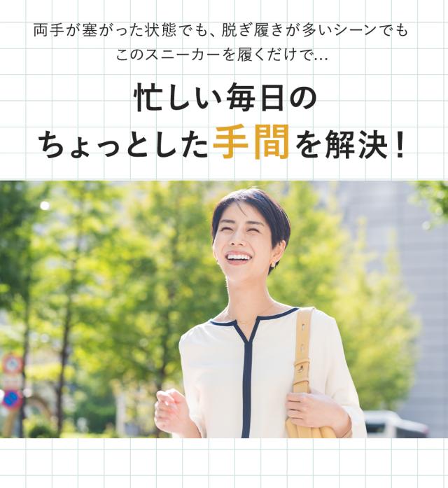 | 結ばない紐靴とスリッポンから選べる! お仕事履きや、両手が塞がるママさんや妊婦さんにもおすすめ! |