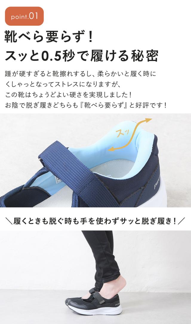 手を使わずに履ける靴 レディース 立ったまま履ける靴 ハンズフリー スニーカー 室内シューズ ストラップ マジックテープ 柔らかい 歩きやすい 立ち仕事 疲れない 履きやすい 軽い 室内履き 外履き 通勤 大きいサイズ 黒 ブラック 母の日 プレゼント
