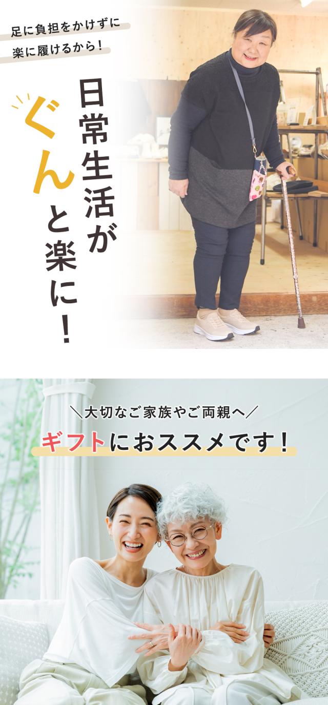 前傾姿勢や膝の曲げ伸ばしがつらくて お悩みのご高齢の方へのプレゼントとしても大人気! |