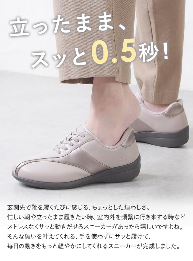 両手を使わず立ったままでもサッと脱ぎ履きできるハンズフリー仕様のスリッポンスニーカー。