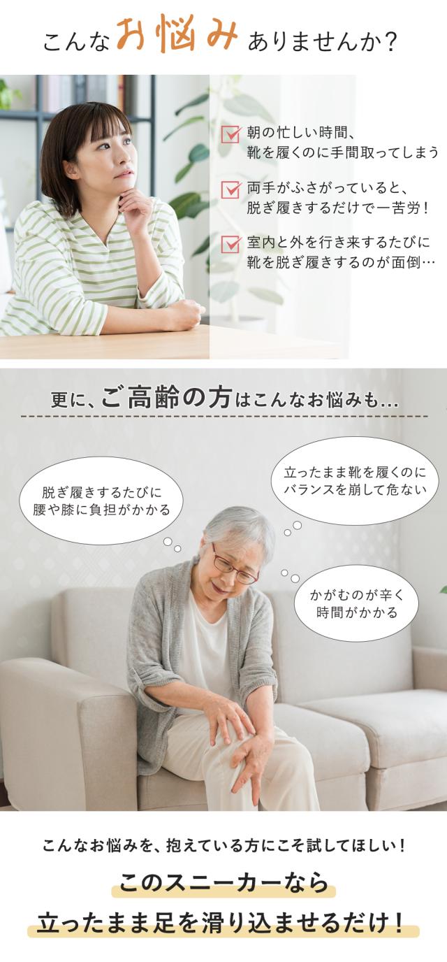 手を使わずに履ける靴 レディース 立ったまま履ける靴 スリッポン スニーカー 室内シューズ 結ばない紐 ほどけない 伸びる 靴紐 やわらかい 歩きやすい 立ち仕事 疲れない 履きやすい 軽い 室内履き 外履き 通勤 大きいサイズ 黒 ブラック 母の日 プレゼント