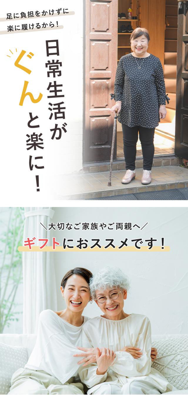 前傾姿勢や膝の曲げ伸ばしがつらくて お悩みのご高齢の方へのプレゼントとしても大人気! |