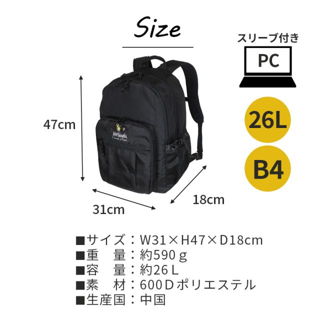 A4・B4サイズ収納可能、大容量 約26L 対応。