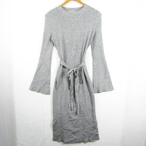 【中古】マウジー MOUSSY リブ ニット ワンピース ロング丈 長袖 ベルト付き レーヨン FREE グレー kz10796
