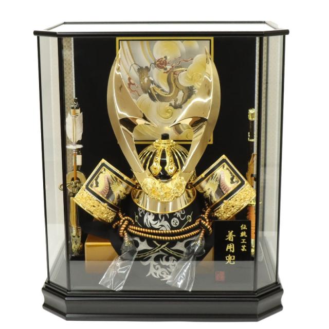 五月人形 ケース入着用兜 25号 ハヤブサ 六角ガラスケース 2025-tb013 幅58cm ケース飾り 端午の節句 節句 お祝い インテリア