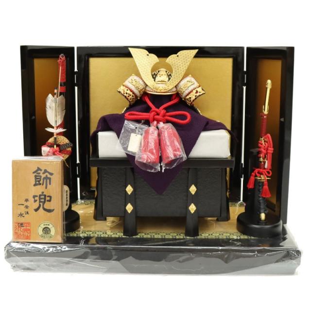 五月人形 兜飾り平飾 一水作 8号 貴 京甲冑 黒塗金屏風 2025-tb063 幅50cm 裾裏 端午の節句 節句 お祝い インテリア