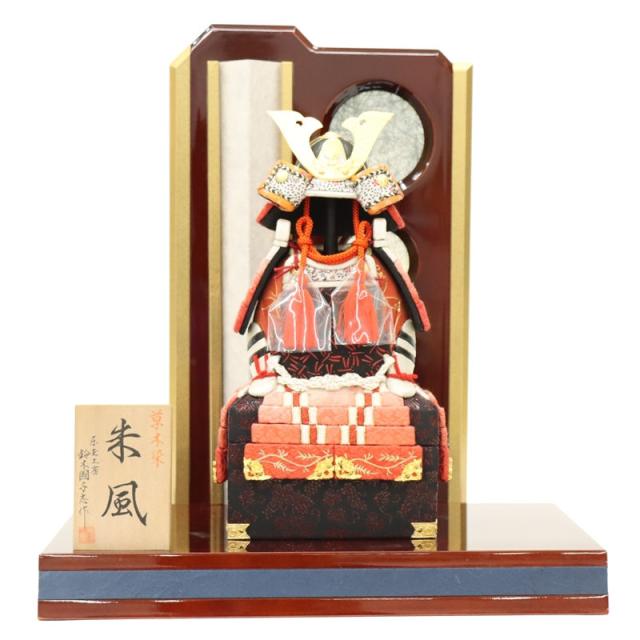 五月人形 木目込み鎧平飾 鈴木國与志作 新朱風 江戸木目込み鎧飾り 楓溜塗LED照明付 2025-tb119 幅35cm 端午の節句 節句 お祝い インテリア