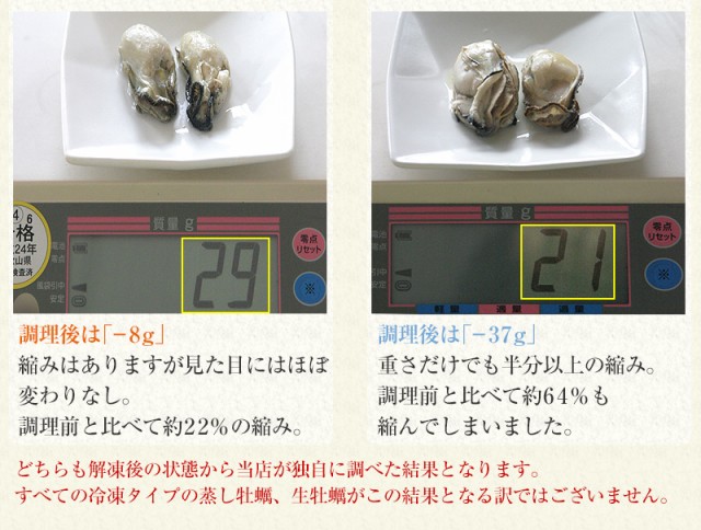 生牡蠣に比べて縮みが少ないのが蒸し牡蠣の特徴!
