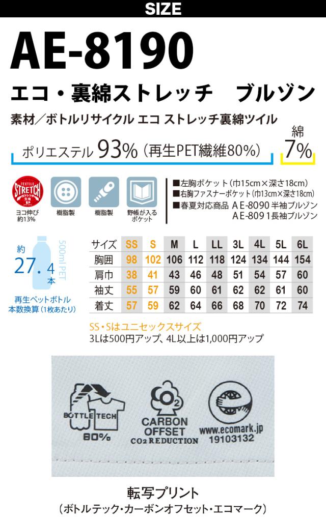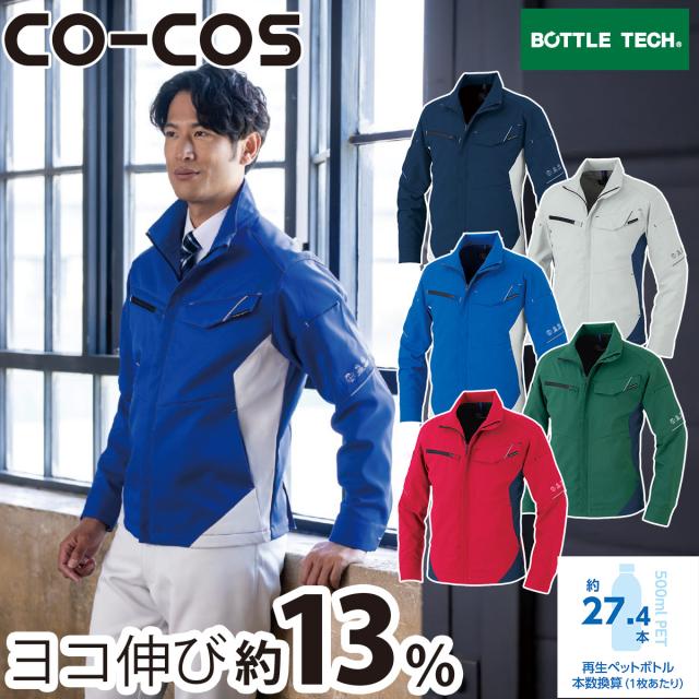 CO-COS エコ・裏綿ストレッチブルゾン AE-8190 大きいサイズ 長袖 帯電防止 UVカット ストレッチ サイドベンツアジャスター 収納性抜群 野帳が入るポケット エコ素材 エコプリント 反射 作業服 作業着 コーコス信岡