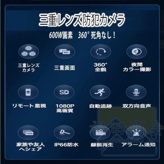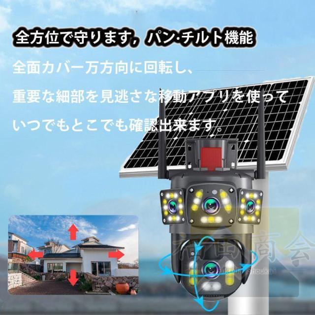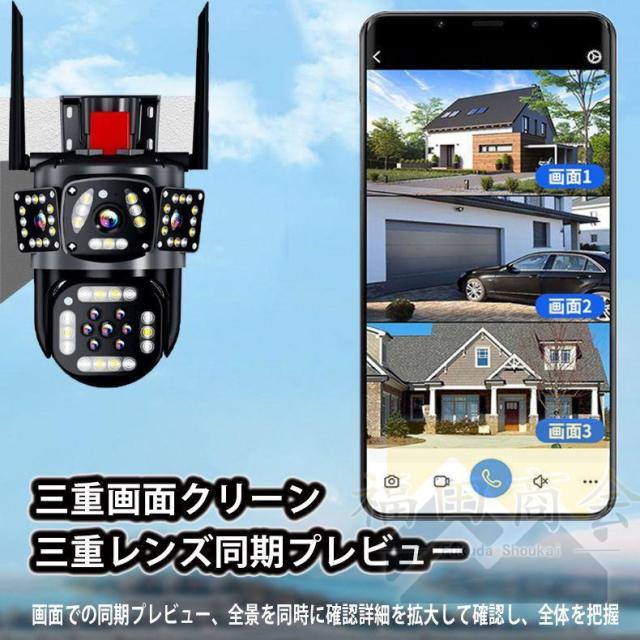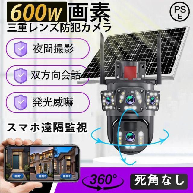 【翌日発送】防犯カメラ 屋外 家庭用 三重レンズ 三重画面 ワイヤレス ソーラー 監視カメラ 動作検知 600万画素 無線 wifi 自動追跡 人感録画 工事不要 敬老の日