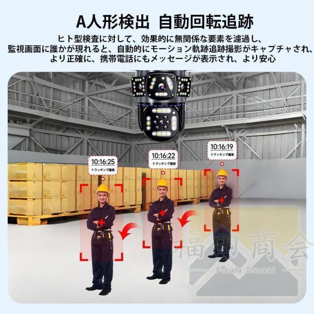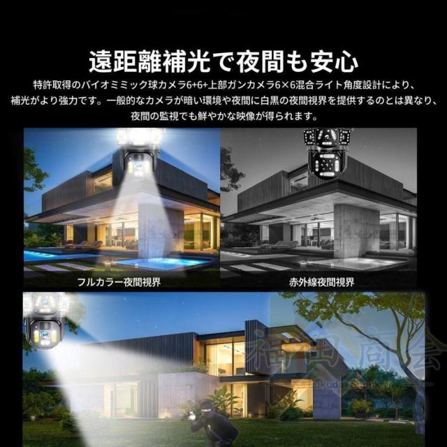 屋外 監視カメラは上部固定カメラ+下部PTZドームカメラ。死角なし3画面で監視できます。上の固定視野カメラ、監視範囲がより広いです。下のドーム型PTZ回転カメラは人体を検知して追跡できます。一台カメラの価格で三台の監視カメラを入手できます!