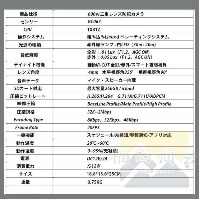 デイナイト機能:自動IR-CUT全彩/赤外/スマ-ト夜間視界
