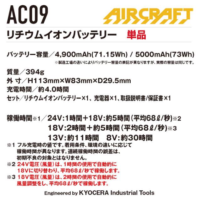 バートル バッテリー 単品 エアークラフト 空調作業服 春夏 メンズ レディース 空調ウェア 涼しい かっこいい人気のBURTLE AIRCRAFT 即日出荷 bt-ac09-t