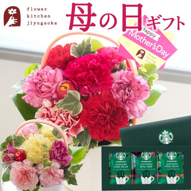 早割実施中! 母の日 ギフト花とスイーツ Mothersアレンジと スターバックスコーヒーセット カーネーション 選べる カラー スタバコーヒースイーツ お菓子 セット 生花 2026 FKHH