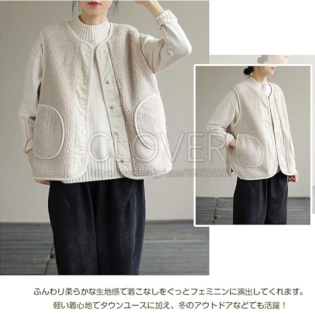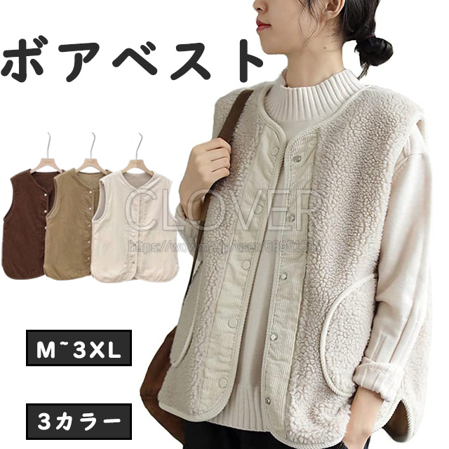 ボアベスト もこもこ フリース ベスト レディース ベスト ショート ノーカラー 大きいサイズ ノースリーブジャケット 韓国 ゆったり 秋 冬 春 部屋着 ルームウェア
