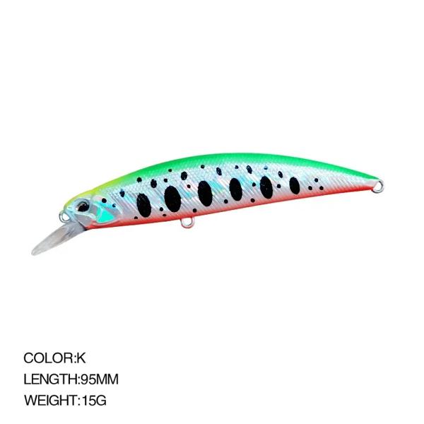 Spearheadd-95 s, 9.5cm, 15g,スズキ,長距離シンキングルアー用のミノーウォブラー