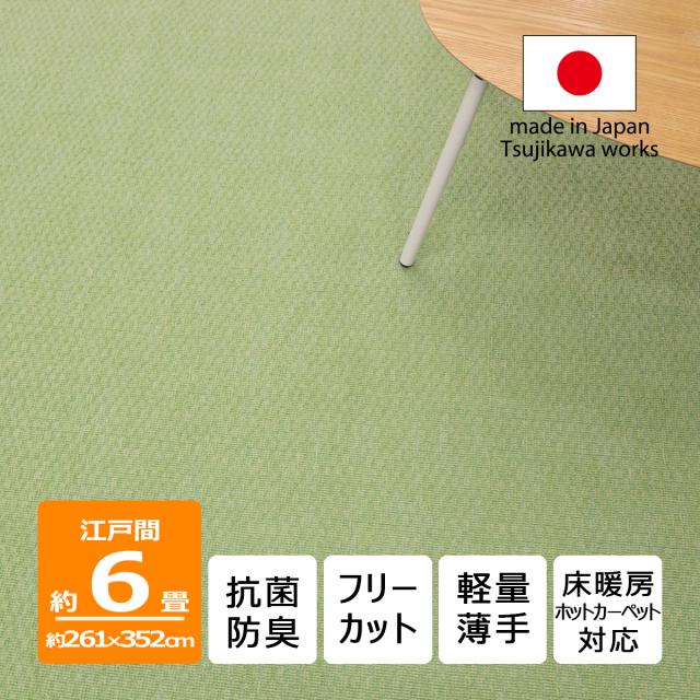 カーペット 6畳 六畳 日本製 抗菌防臭 軽量薄手 ジェミニ 261×352cm 江戸間 6畳用 グリーン 緑 6帖 辻川産業株式会社 Tsujikawa