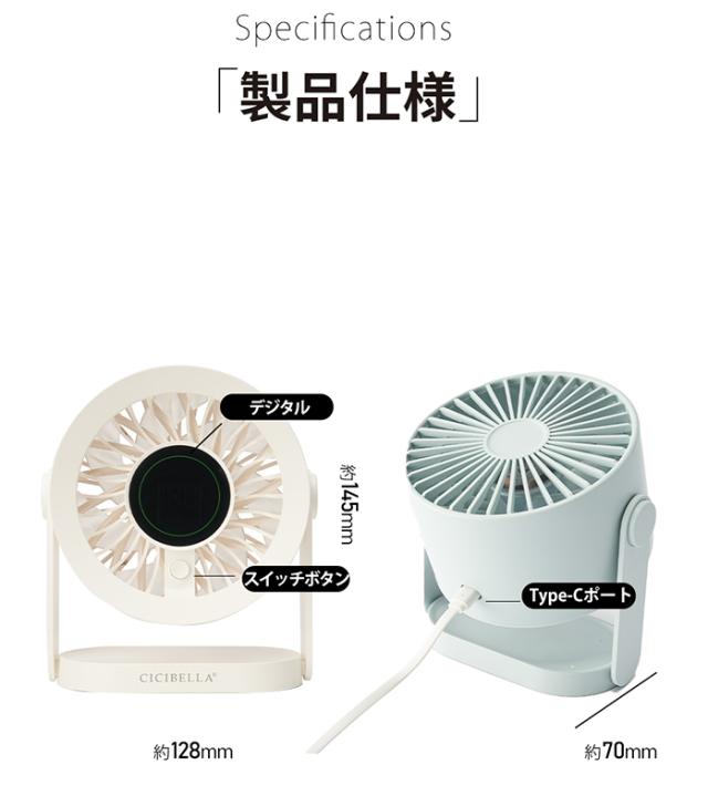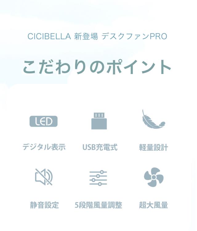 デスクファンPRO サーキュレーター 大風量 約256g パワフル ミニ 扇風機 小型 ハンディファン コンパクト 静音 置き型 卓上 おしゃれ 折りたたみ 暑さ対策 オフィス デスク cicibella