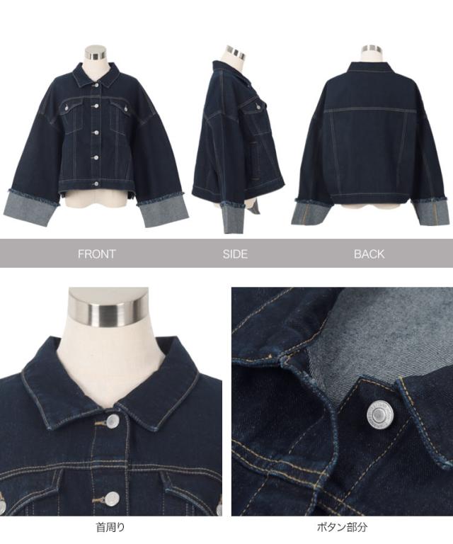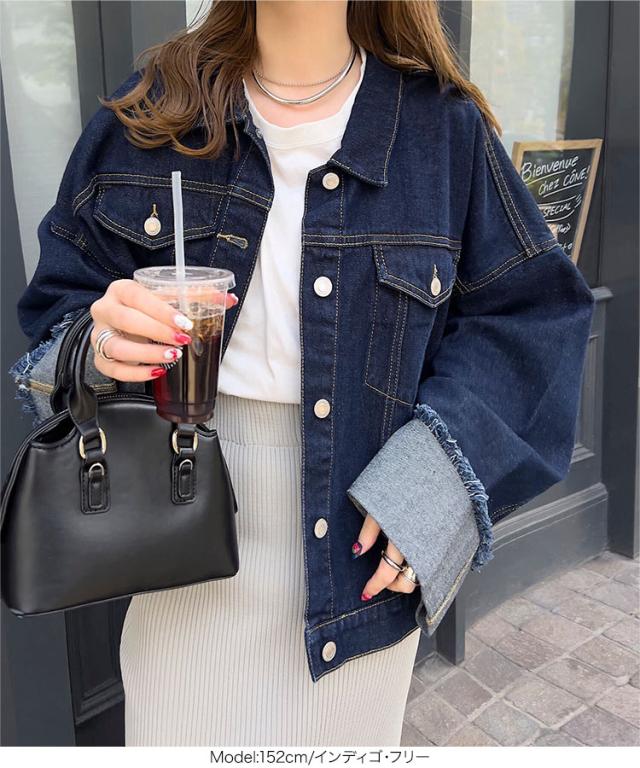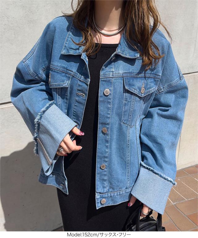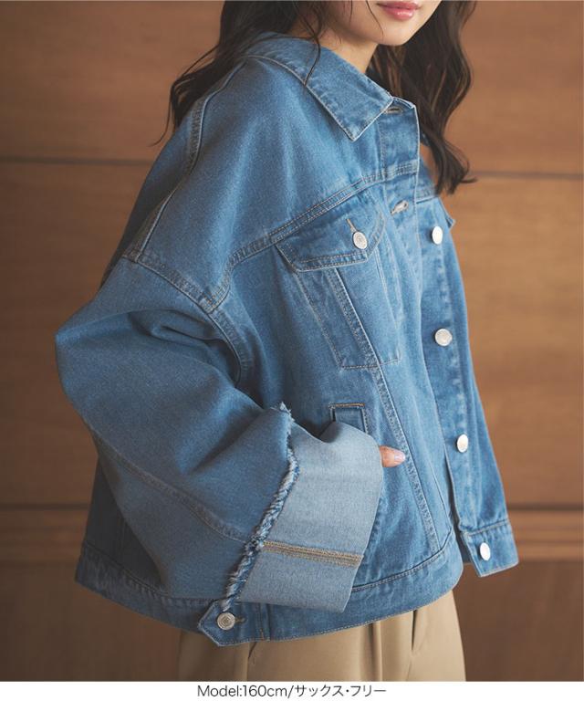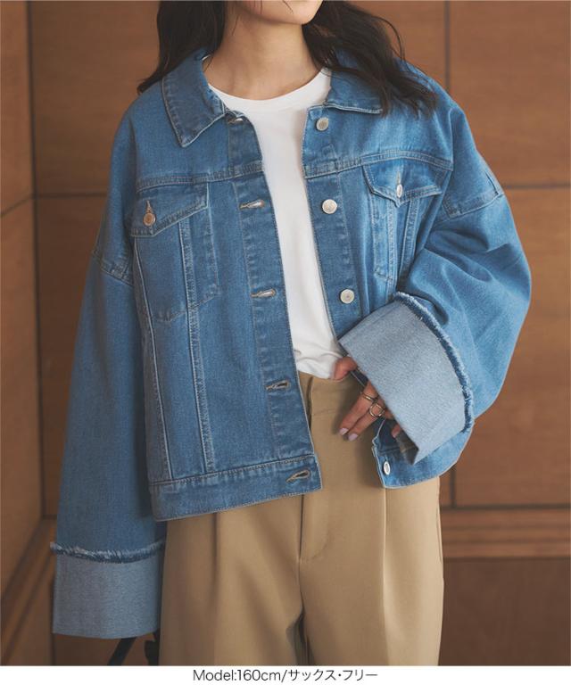春新作 ワイドスリーブデニムGジャン K1374 入荷済 レディース 20代 30代 40代 アウター ジャケット 長袖 デニム Gジャン ジーンズ ブルゾン ロングカフス ヴィンテージ セットアップ 羽織り ジャンパー ジャンバー 綿 コットン