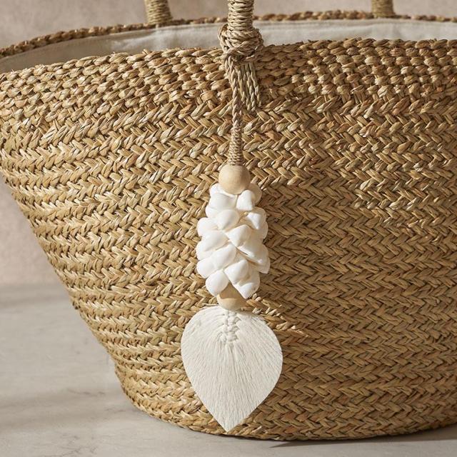 バッグ チャーム レディース キーチャーム シェル コットン カーテンタッセル おしゃれ バリ島雑貨 タッセル チャーム アジアン雑貨 手作り 14188