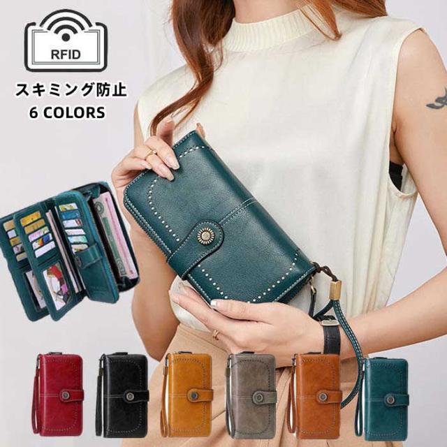 財布 レディース 長財布 スキミング防止 多機能財布 PU革 ウォレット ギャルソン 大容量 コインスルー 大きく開く 小銭入れ