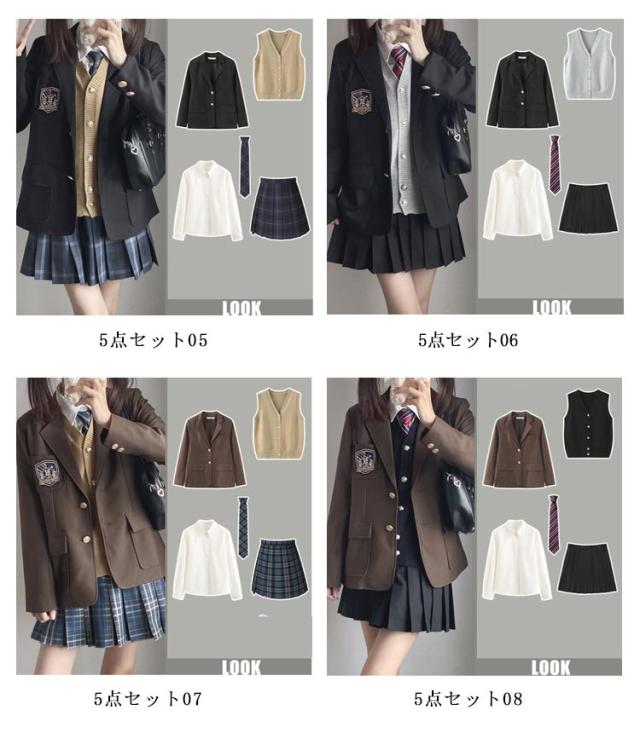 長袖 制服 セットアップ JK制服 5点セット 女子高生 制服セット スクール コスプレ衣装 シャツ ネクタイ ベスト ブレザー スカート 女子 中学生 高校生 セーラー服 フォーマル 学生服 セーラー服