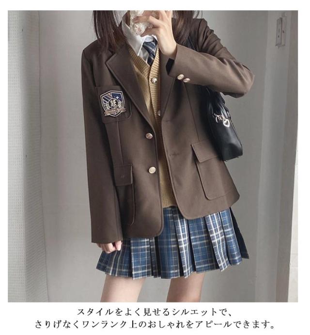 | 5点セット内容:ブレザー+長袖シャツ+スカート+ベスト+ネクタイ 気軽に学生時代にタイムスリップして、青春時代を味わえます。 薄手軽量のさわり心地、着心地よく、ポリエステル素材で気候が変わりやすい春や秋など肌寒い季節に最適なジャケットです。 スタイルをよく見せるシルエットで、さりげなくワンランク上のおしゃれをアピールできます。 日常着や学校制服としてはもちろん、クリスマスイブや、忘年会、宴会、パーティーの場合にご利用可能です。 | |