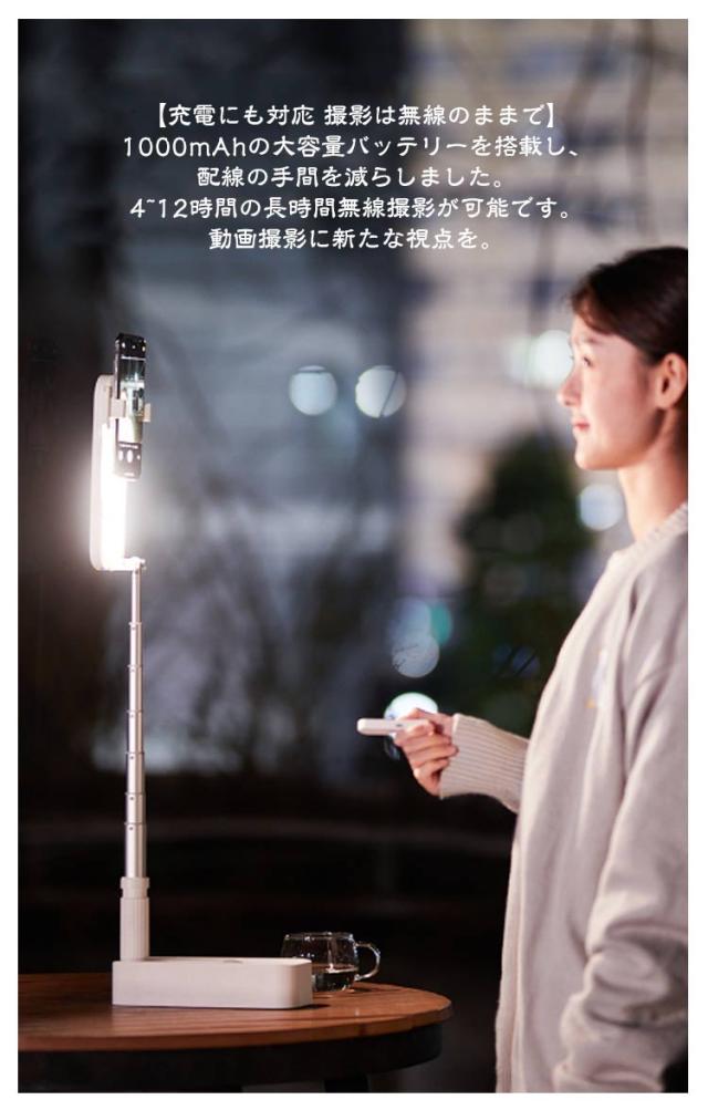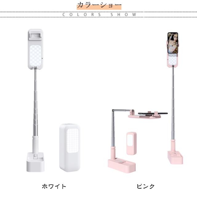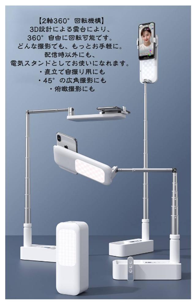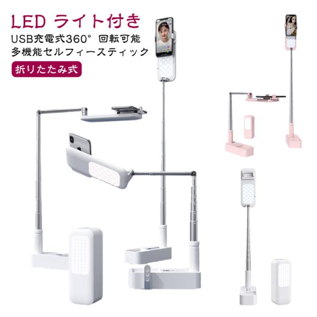 自撮りライト ライト付き スマホスタンド 卓上 LED ライト usb 充電式 ワイヤレス リモコン分離式 多機能 セルフィースティック 折りたたみ 式 ビデオライト 生放送ライト 撮影スタンド 上 から 俯瞰撮影 持ち運び 自撮り 撮影用