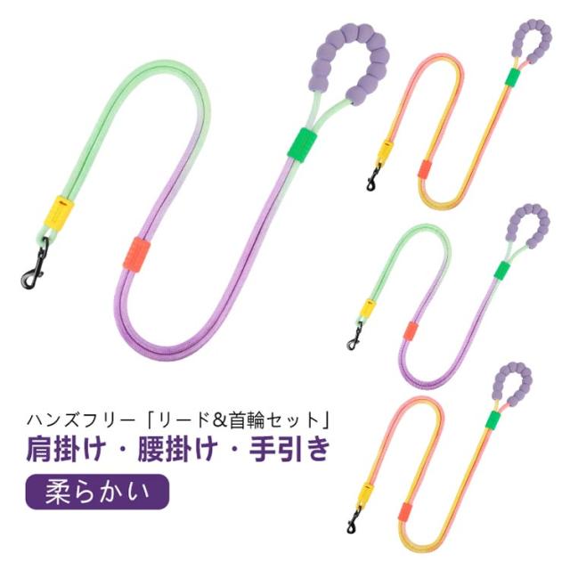 犬 リード 犬用 犬具 首輪 リードセット ハンズフリー 肩掛け 斜め掛け ショルダーリード スリップリード トレーニング 首輪リードセット ロープ 大型犬 中型犬 小型犬 おしゃれ かわいい 首輪付き 首輪リード メッシュ 通気性