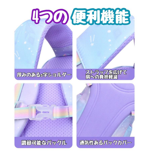 小学生低学年から高学年まで楽しく背負ってもらえる、明るいカラーのリュックサック
