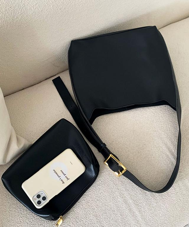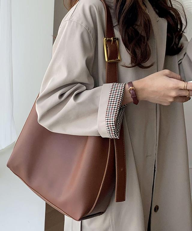 【2WAY/斜めがけ/同素材のポーチ付/ゴールドバックルがおしゃれなショルダーバッグ/トートバッグ】