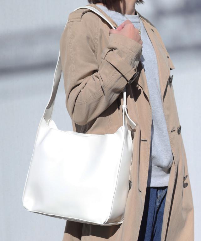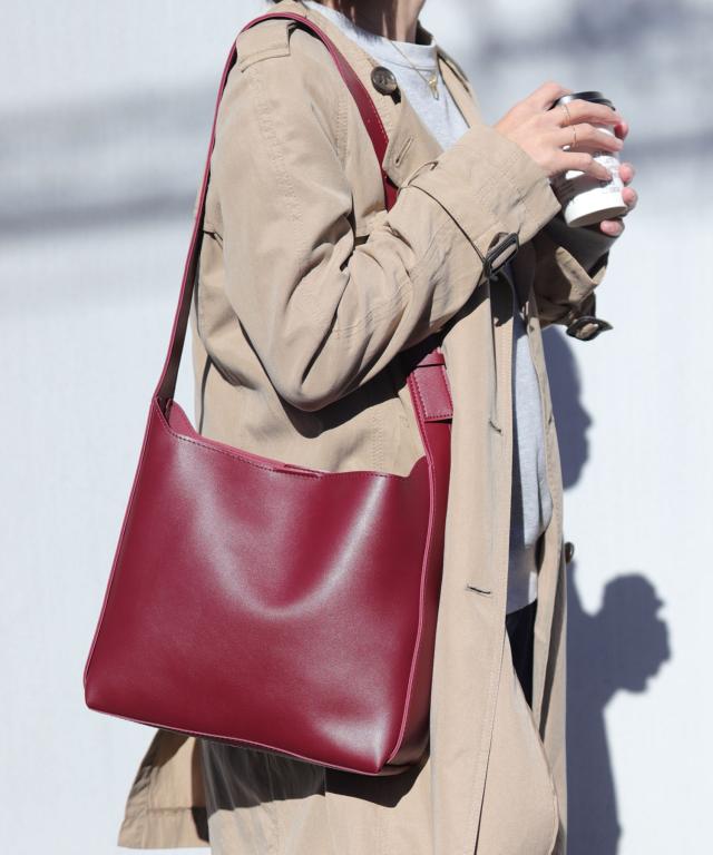 キメ細やかなシュリンクPUレザーを使用し、どんな服にも合わせやすい大人シックなショルダーバッグに。