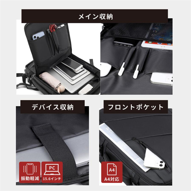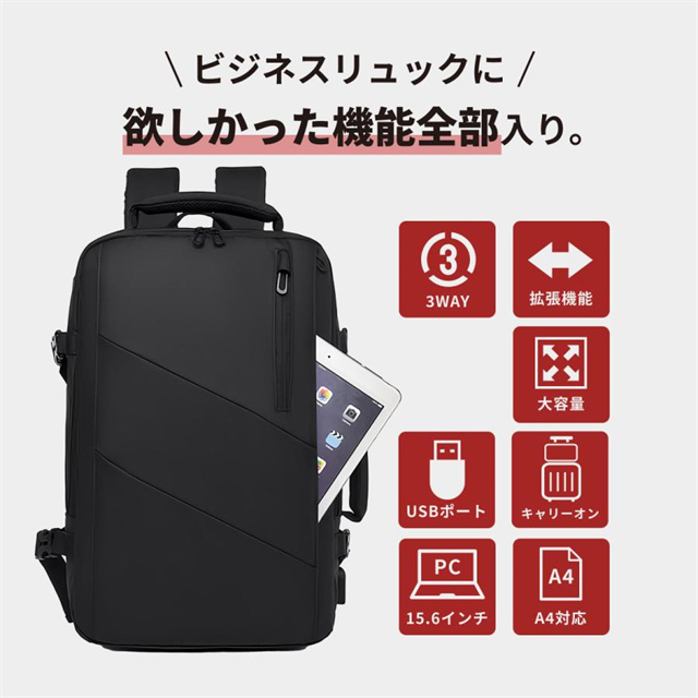 ビジネスリュック メンズ バックパック リュックサック リュック 大容量 撥水 3way USB充電 盗難防止マチ拡張 15.6インチPC 多機能 耐衝撃 通勤 出張 旅行 送料無料