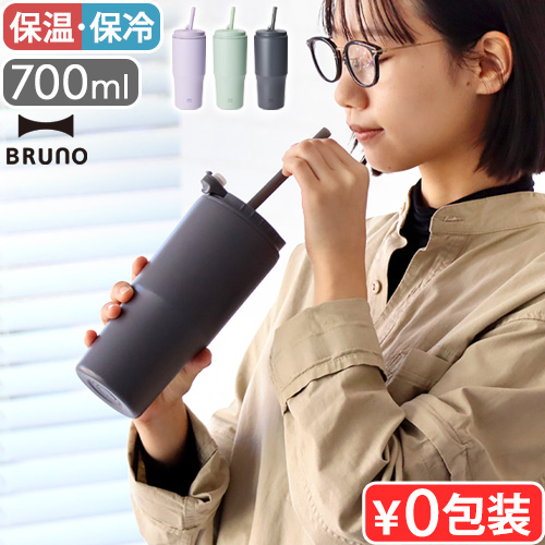 タンブラー 持ち運び 蓋付き 保温保冷 ストロー付き 直飲み ブルーノ BRUNO 2WAY ストロータンブラー Lサイズ BHK323 おしゃれ かわいい ステンレス 水筒 マグボトル ステンレスボトル マイボトル 食洗機OK 700ml スリム アウトドア