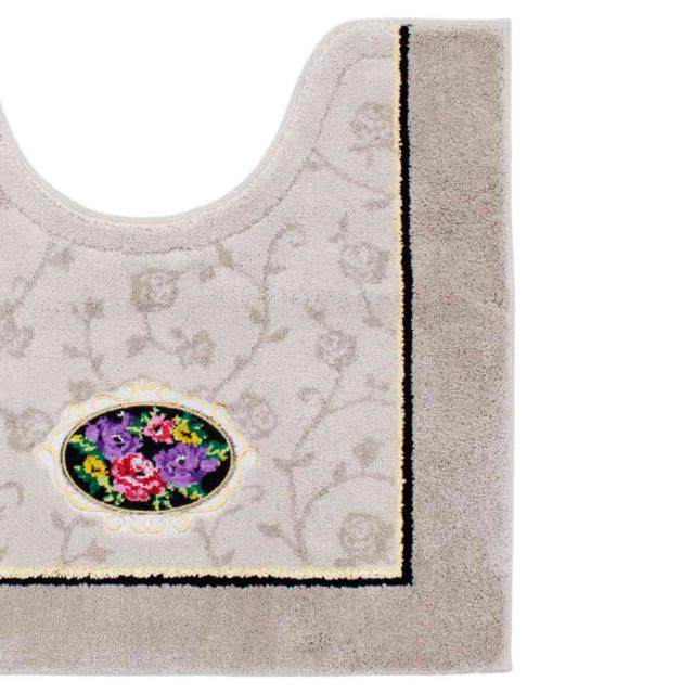 ウィルトン織りならではの繊細な地模様が美しいトイレマットです。1枚のマットを作るために用意する糸は約1500〜2000本。ぎゅっと目の詰まった踏み心地、しっかりとした風合いが特徴です。