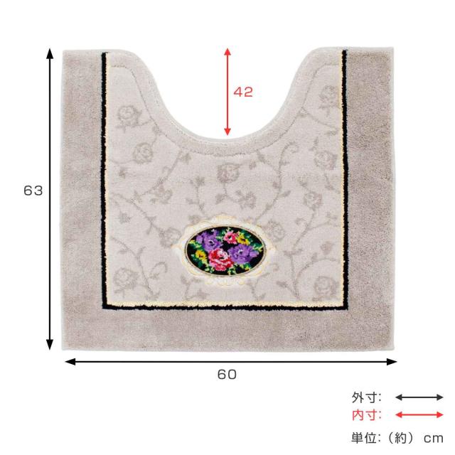 トイレマット シェニールロゼ 約60×63cm ( トイレ マット 足元マット 滑り止め 洗濯OK バラ ふかふか トイレタリー すべり止め 丸洗い 60×63 ウィルトン織り ピンク グリーン ベージュ )