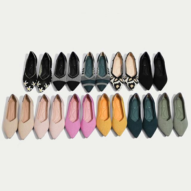 11色|走れるパンプス ぺたんこ 痛くない 柔らかい 大きいサイズ ニットVカット ポインテッドトゥ ニットポインテッドトゥ ローヒール フラット 就活 入学式 卒業式 結婚式 レディース フォーマル 美脚 春夏 低反発 脱げる おしゃれ 通勤 黒 ブラック ベージュ