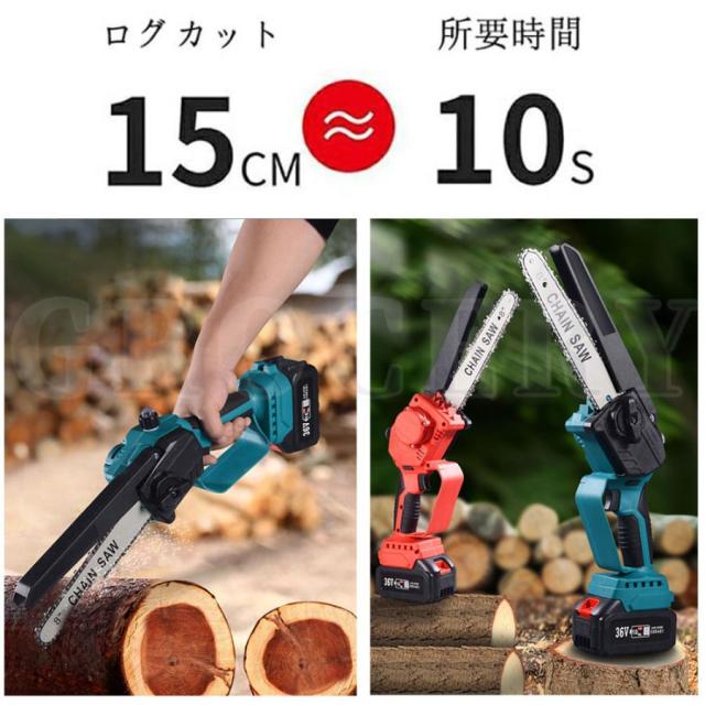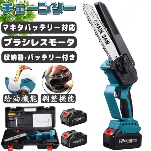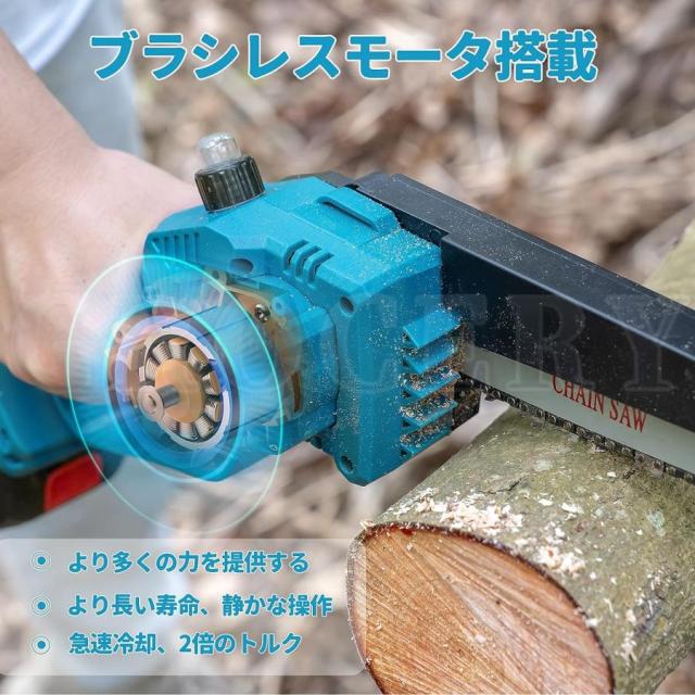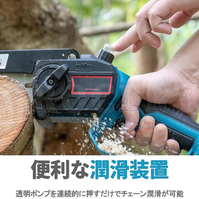 充電式チェーンソー マキタ 18vバッテリー互換対応 6インチ 8インチ 電動チェーンソー バッテリー付き 収納箱付き 自動給油 工具レスチェーン調整 強力 片手