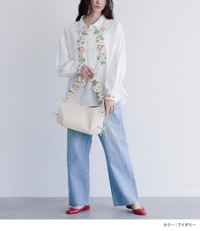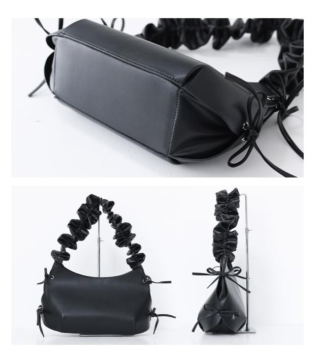 ■デザイン サイドのリボンデザインと、ギャザーデザインのストラップがポイントのバッグ。マチがしっかりあるため、折り畳み傘やペットボトルなども収納できるサイズ感です。開口部はマグネットスナップ留めで大きく開くので、荷物の出し入れも楽ちん。 ■コーディネート サイドのリボンが映えるデザインなので、ギャザーのストラップが程よいアクセントになり、シンプルコーデもぐっと華やかに。デニムなどのカジュアルスタイルでも合わせるだけで女性らしさをプラスすることができ、ワンピースやセットアップに合わせれば、上品でこなれた印象に仕上がります。 ■素材 季節を問わずどんなコーディネートにも馴染む、合成皮革を使用。デイリーから日常使いまで幅広く活躍する素材感です。 |