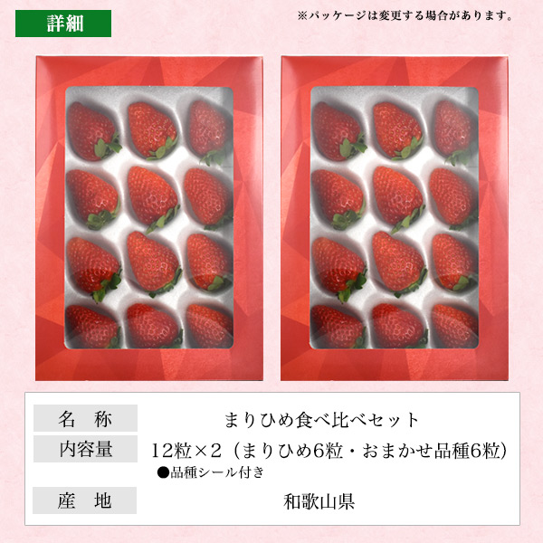 いちご 食べ比べセット 和歌山県産 まりひめ&1種おまかせ品種 12粒×2パック バレンタイン ギフト 希少な完熟 お取り寄せ 高級 いちこ 季節限定 贈答用 誕生日 御祝 内祝 苺 イチゴ 国産 フルーツ ご挨拶 ご礼 快気祝い ご褒美 果物 化粧箱 贈物 食品 プレゼント グルメ