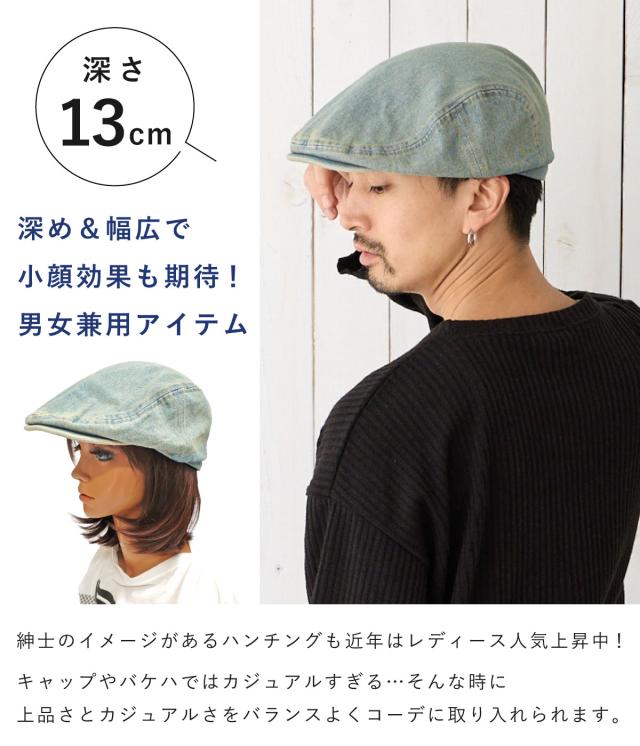 デニム ハンチング 帽子 深め メール便は送料無料 ウォッシュカラー メンズ レディース 帽子 56cm-58cm 小顔 hun-684 ハンチング帽 キャップ 綿 春夏 サイズ調節 お洒落 カジュアル 色落ち ヴィンテージ加工 渋い カッコいい 男女兼用